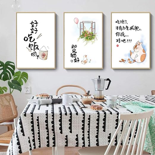 Amazon.co.jp: 現代のレストランのキャンバスの絵画猫中華風日本人食べるよく装飾ぶら下げ写真かわいい保育園の絵画-30x40cmx3pcsいいえフレーム: ホーム&キッチン
